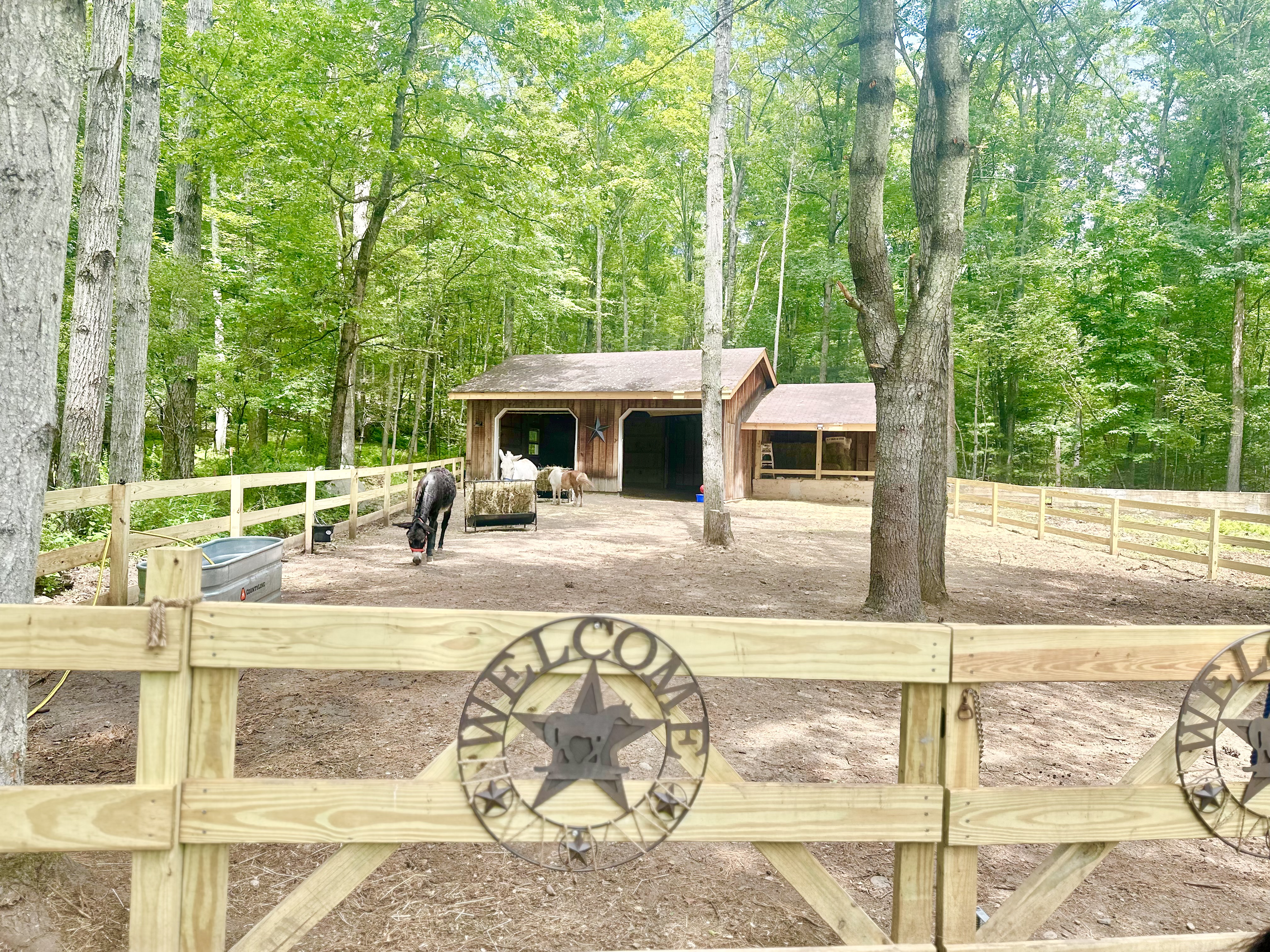 Guests have private access to the estate home, including the indoor pool, fitness room, entertainment/game room, fire pit, laundry room, porches, patios, and nature trails. The barnyard corral—home to miniature horses, donkeys, chickens, and our goats Penelope & Oreo—is also open for gentle interaction during your stay. With plenty of room indoors and out, The Retreat House offers something for every age and group. Note* Trails & corral available from Dawn to Dusk during your visit.